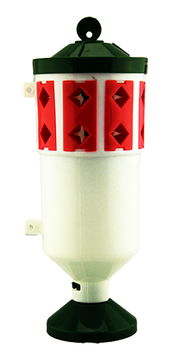 誘捕器在害蟲(chóng)成蟲(chóng)揚(yáng)飛前懸掛,與誘芯配套使用,用量參照誘芯使用說(shuō)明書,揚(yáng)飛盛期可酌情增加。