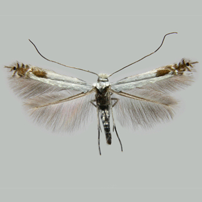 | 配套誘捕器 | 三角形誘捕器 小船型誘捕器 | 昆蟲信息 | 桃潛葉蛾(Lyonetia clerkella L.)英文名:peach leaf miner。 體長(zhǎng)3.5mm左右,翅展7.1mm左右,體銀白色,觸角絲狀,黃褐色,長(zhǎng)于體,基節(jié)的眼罩白色。前翅狹長(zhǎng),銀白色,有長(zhǎng)緣毛,中室端部有一橢圓形黃褐色的斑點(diǎn)。后翅灰白色,緣毛長(zhǎng)。越冬型成蟲翅前部和后部色較深,中間稍淺,中室橢圓形斑比夏型成蟲色深,為深褐色。 一年發(fā)生7至8代,以蛹在被害葉上作繭越冬。來年4月桃展葉后成蟲開始羽化,成蟲晝伏夜出,卵產(chǎn)于葉表皮肉內(nèi)。幼蟲孵化后,潛食葉肉。將串成彎曲似同心圓狀蛀道,糞便充滿蛀道中,直到葉片破裂。幼蟲老熟后鉆出,于葉背吐絲、結(jié)繭、化蛹。發(fā)生期不整齊,至11月以末代幼蟲于葉片上結(jié)繭、化蛹、越冬。 |